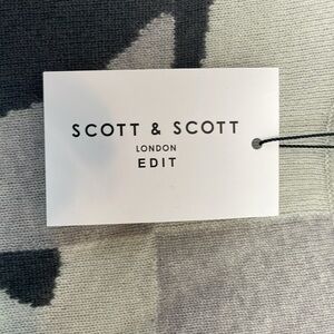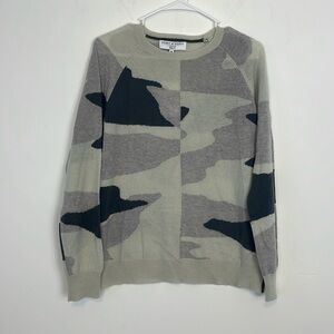 Scott & Scott London Edit Men's Merino Wool/Cashmere Blend Camo Print Sweater. Size Medium. New with tags. No stains. Off white/Eggshell color with light and dark gray camo print. Lightweight, crewneck pullover sweater. Armpit to pit measures 20 inches. Top of shoulder down 24 inches. Comes from a smoke free home.