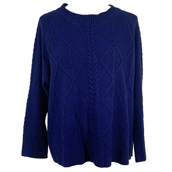 Scott & Scott London Sweater Womens L Blue Wool Cashmere Diamond Cable-knit