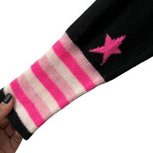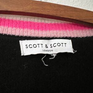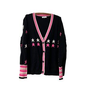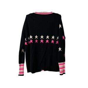 Scott & Scott London Womens Black Pink White Pure Cashmere Star Print Cardigan L