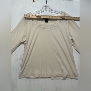 Scott Taylor Cream Nylon Top XL Ruched Scoop Neck 3/4 Sleeve Stretch Blouse