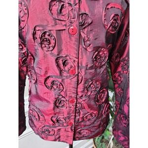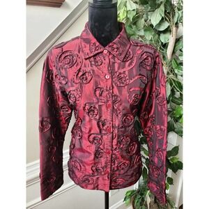 Scott Taylor Women Burgundy Polyester Collared Long Sleeve Buttons Down Shirt M.