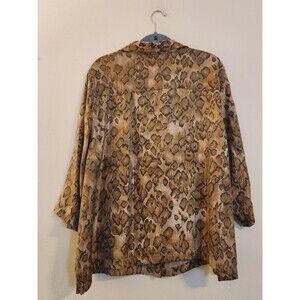 Scott Taylor Womens 3X Brown & Beige Animal Print 3/4 Sleeve Button Up Shirt