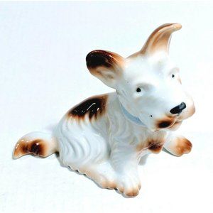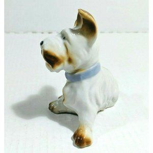 Vintage Scottie Dog Porcelain Figurine Brown & White w/ Blue Collar