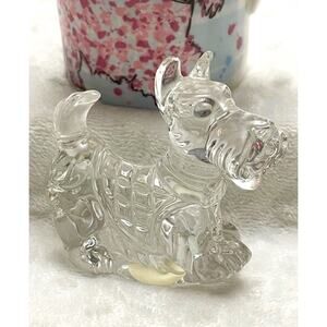 Cute mug features pink tone scottie dog on a blue plaid mug with colored dots. Measures 3 7/8" tall, 2 7/8" across, & 2 1/2" handle. Designed by Scott Inness and is fine china. Mug is in excellent with cracks, chips, or breaks. Bottom has very minor wear. Princess House 24% Lead Crystal Rocking Scottie made in Germany, from the Crystal Treasures Collection. Crystal scottie is also in Excellent condition with no cracks, chips or breaks. Original sticker remains in place. Recommended hand wash only. Mug not microwave safe. Comes from a smoke free, pet free home.