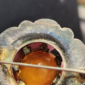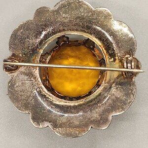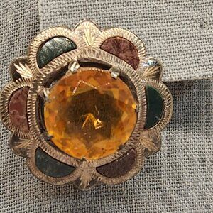 Antique Victorian Scottish Agate Amber Sterling Silver Brooch Vintage