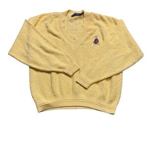 ✨ Scottish Isle Bernette Yellow V-Neck Golf Club Embroidery Sweater XL ✨