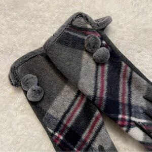 Scottish Tartan Pom Pom Gloves Black Gray Pink Plaid New Without Tags
