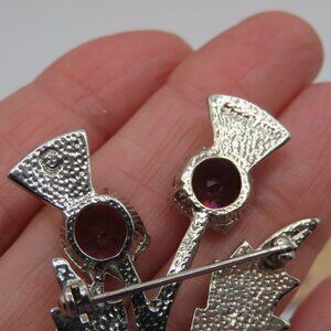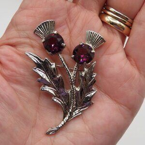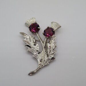 Scottish Thistle Silver Tone Purple Crystal Brooch. Approximately 2 inches in size.