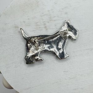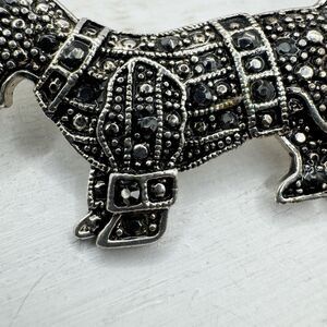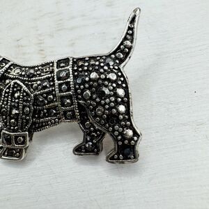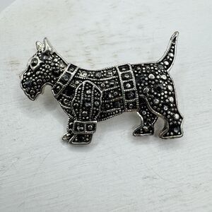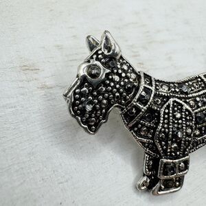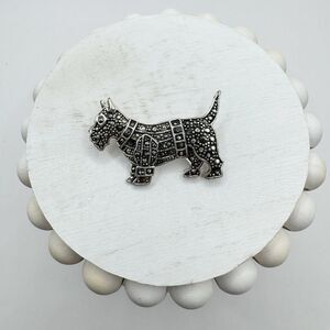 Scotty Dog Scottish Terrier Brooch Pin Silver Tone Marcasite Rhinestone 1 3/4” B
