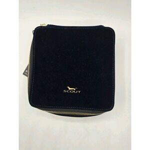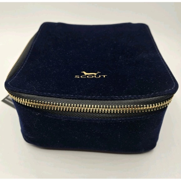 Scout Bags Perfect Gem Square Jewelry Case Zipper Navy Velvet W/ 3 Extra Pouches