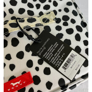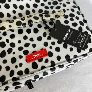 Scout Glow Up Makeup Travel Case Polyester Bella Cruella White Dot, new with tags. Note handle being a different color from the bag.