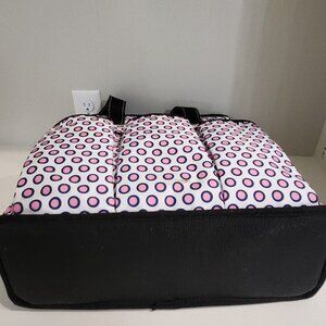 Chill out, as there's a cooler version of the pocket rocket. No one at the movie theater will suspect that your stylish pockets there in the front and one in the back hold a personal concession stand. Long reinforced handles allow you to easily carry the cooler over the shoulder while toting a few bottles of wine. Great reinforced bottom allows a flat surface for packing. Condition is very nice, like new. There one tiny, little stain way small and not dark. See pics. Size is 14.5 by 5 by 15 inches. Non smoking pet free home.
