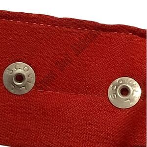 The Scovill Vietnam Era Military Scarf is a historical military accessory from the Vietnam War period. This particular scarf is red in color and measures 18.75 inches in length and 7.5 inches in width, with a maximum neck size of 18 inches.