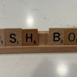 Offered is a custom made Posh Boss nameplate made with scrabble tiles. It measures 7" wide. The nameplate is made with tiles from several different batches of tiles so there are slightly different colors of tiles.