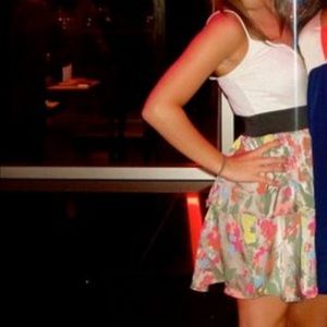 Worn once. Perfect condition. Comfortable dress that is very flattering to the body. Fitted on top, flowy at the bottom. Adjustable straps. Great summer pattern. zipper goes down the front for a unique and stylish look! Size- small