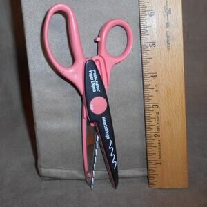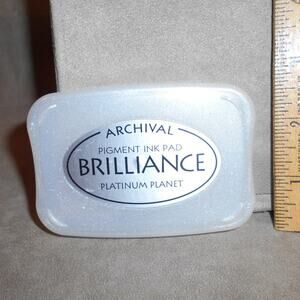 Scrapbook/Paper Crafting Lot: Brilliance Ink Pad, Fiskars Paper Edgers, Ribbon. Brilliance Platinum Planet Ink Pad is open but still moist. In addition, lot includes Heartstrings Fiskars Paper Edger Scissors. 3 wood stars, and 2 rolls of ribbon. Please see pictures.