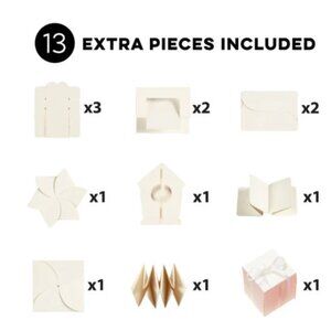 Get creative with this versatile 4.5" x 4.5" white explosion box, perfect for all your card making and scrapbook projects. It comes with 12 extra white pieces, offering endless possibilities to customize your design exactly how you want.