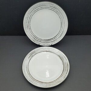 Scratch Collection Dinner Plates - Set of 2. White plates with random gray black etched lines and a black back. Excellent pre-owned condition. 10-5/8". I have other listings in this pattern but please check with me before bundling due to weight. Thanks.