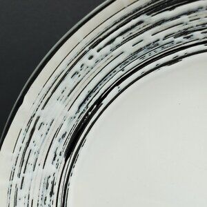 Scratch Collection Salad Dessert Plates - Set of 4. White plates with random gray black etched lines and a black back. Excellent pre-owned condition. 8.25". I have other listings in this pattern but please check with me before bundling due to weight. Thanks.