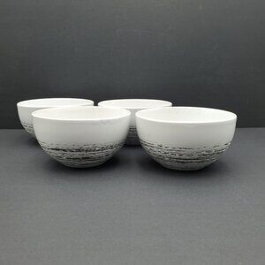 Scratch Collection Soup Cereal Snack Bowls - Set of 4. White bowls with random dark gray etched lines. Excellent pre-owned condition. 3" deep and 5-3/8" across the top. I have other listings in this pattern but please check with me before bundling due to weight. Thanks.