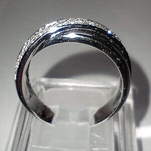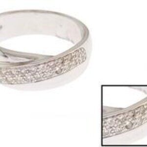 -- Two (2) Wide-Band 14Kt WG ~0.34ctw Round Pavé-Set White Diamond Rings in a Cross-Over Style Setting – Each Missing 1 Round White Diamond; Sizes 8 & 9; Measures ~8x23mm (top), 3mm High, 5mm Wide; Together Weigh ~11.85g, Both Stamped “14K THAILAND” with Maker’s Mark.
