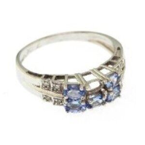 -- 10Kt WG ~1.00ctw Oval Tanzanite & 0.08ctw Round Diamond Ring – Missing 1 Oval Tanzanite; Size 8; Measures ~6x17mm (top), 6mm High, 2mm Wide; Weighs ~2.35g, Stamped “10K”.