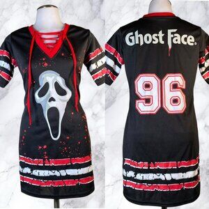 Ghost Face is the name. Horror is the game. Prepare to terrorize your neighborhood when you dress up in this officially licensed Ghost Face Jersey Dress. Represent your favorite villain in style!