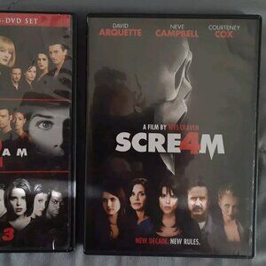 Experience the thrill with the Scream Trilogy DVD Set. Featuring iconic horror films in a sleek black and red design. Perfect for movie nights.