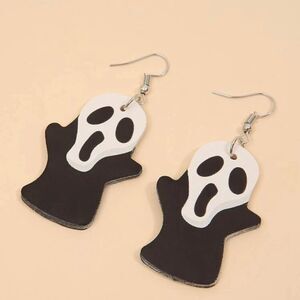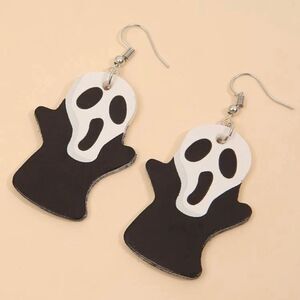 Unisex adult super cute black and white faux leather Scream movie character dangle earrings. New with tags. Made from hypoallergenic nickel free metal. Approximately 1.5" long. Lightweight!