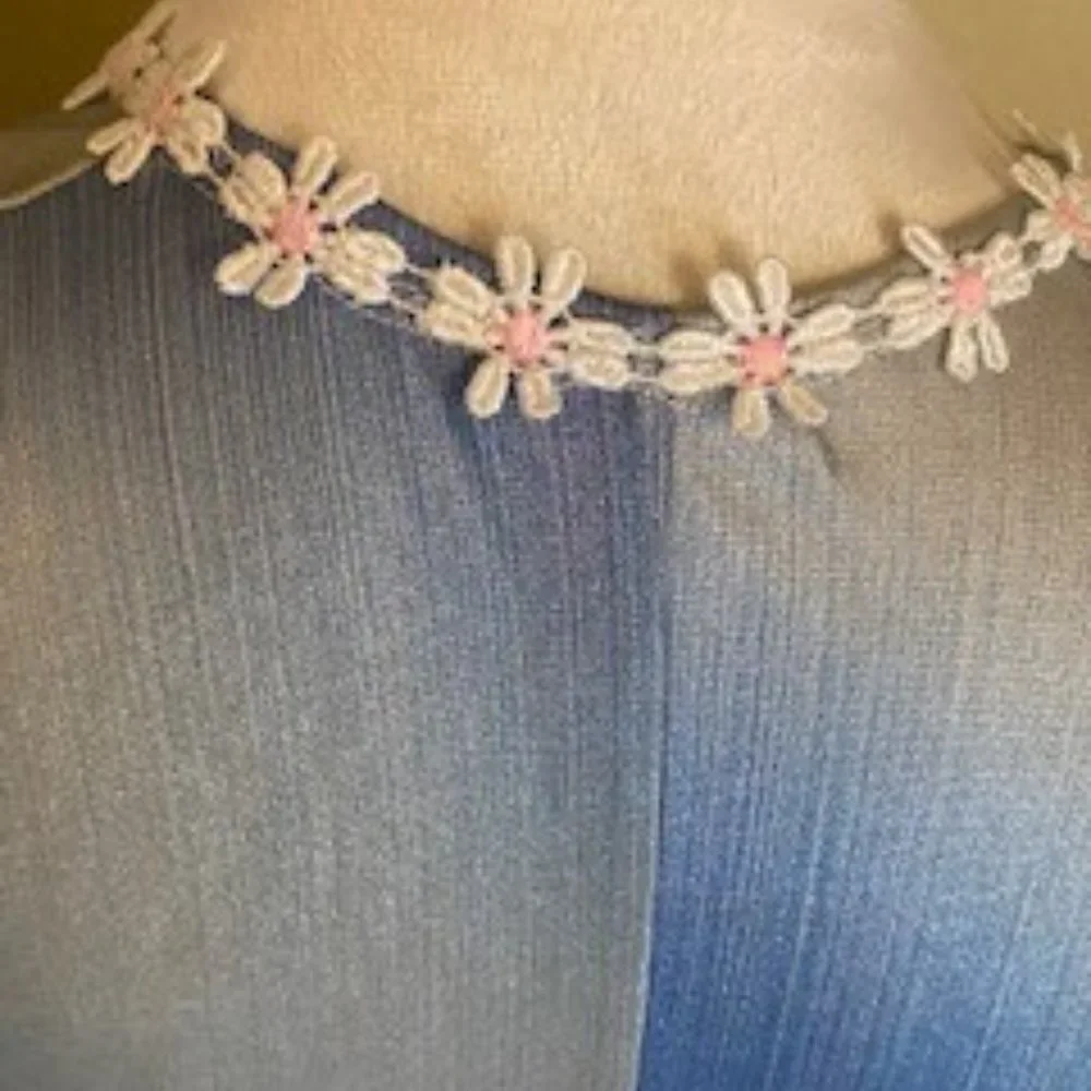 Light flowing adorable shimmering dress lined with daisy around v neck