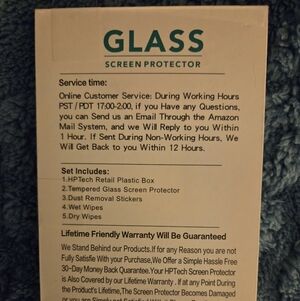 Two-step screen cleaning glass, premium tempered. HP Tech, scratch resistant,zero bubbles, ultra clear, and 9H hardness. Box has been opened but not used.