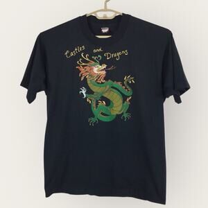 Screen Stars Best Vintage 90's Black Tee Castles & Dragons Graphic Glitt…