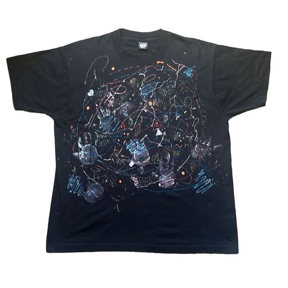 Screen Stars Vintage 90's Black Custom Splatter Paint Single Stitch Shirt XL Art
