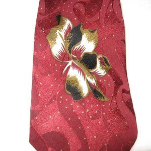Deep Red / Burgandy with Iris floral design in black, green and white
