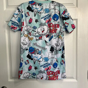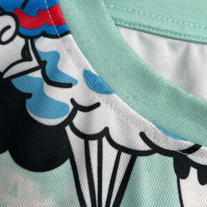 Stand out in this vibrant teal Bubble Crash Pattern Tee, perfect for adding fun to your wardrobe. The cool cartoon character design adds a playful touch to any outfit. Made with high-quality materials for comfort and durability, this tee is a must-have for casual days or adding a pop of color to your look. Let your inner child shine with this awesome preloved men's medium t-shirt!