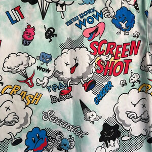 Stand out in this vibrant teal Bubble Crash Pattern Tee, perfect for adding fun to your wardrobe. The cool cartoon character design adds a playful touch to any outfit. Made with high-quality materials for comfort and durability, this tee is a must-have for casual days or adding a pop of color to your look. Let your inner child shine with this awesome preloved men's medium t-shirt!