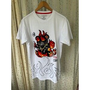 Screenshot Men's Puffy Chenille Fleece Bling Fire Bear Embroidery T-Shirt M