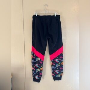 Screenshot men’s Hip Hop Track Pants. In like new condition. Size large black with retro 80s print. Slim fit, drawstring waist, front pockets and single rear pocket.