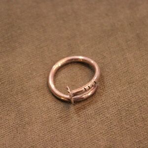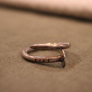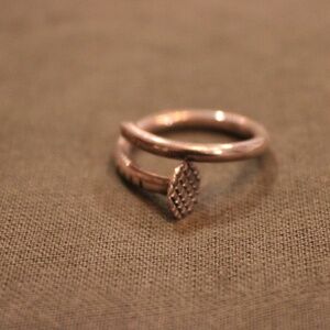 Sterling silver. Could be slightly adjustable in size. I believe it’s a size 7. Super cute for a thumb ring. Barely worn. Just needs to get cleaned.