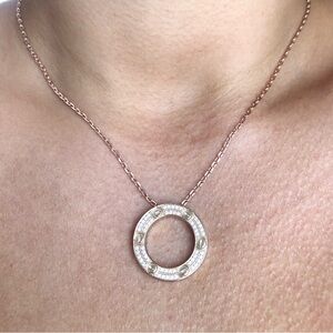 New. Rose Gold Screw Pavé with zirconia stones Circle Necklace . Perfect for everyday wear if you Love Fashion Luxury . High quality Jewelry . 18k Gold Plated and Stainless steel. Water resistant. Does not tarnish. Length 18 inches and 1.5 inch extension.