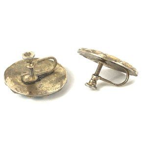 Screwback Enamel Button Earrings Sterling Silver 925 Hand Painted Flower Rose