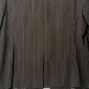 Script Blazer Women Size 10 Brown Pinstripe 2 Button 1 Vent Stretch