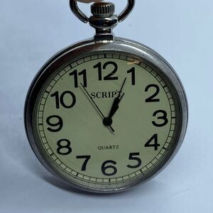 Script Brand Vintage Silver Tone Open Face Retro Pocket Watch *FRESH BATTERY*