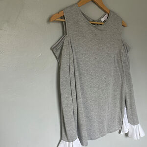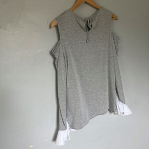 This chic top features long sleeves with white cuffs and keyhole back detailing. Perfect for day to night styling!
