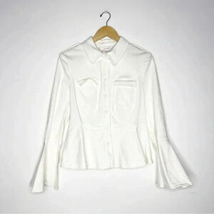 Scripted Ivory Denim Peplum Jacket with Bell Sleeves – Size Medium – Made in USA