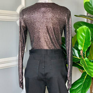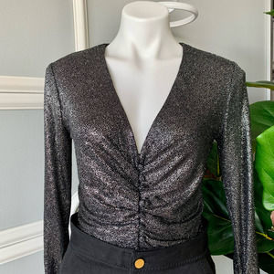 Dance the night away in this sparkling, sultry bodysuit, which can be neatly tucked into skinny jeans or a mini skirt.