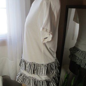 Scripted White Short Sleeve Top with Black and White Striped Tiered Hem Size S