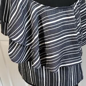 Scripted Women's Gray & White Striped One Shoulder Layered Ruffle Top Size SM US