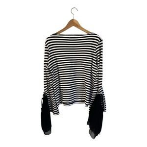 Scripted Women's Shirt Top Black White Stripes Medium