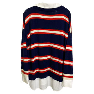 Scripted Women's Sweater Navy Red Striped Collared Pullover Wool Cashmere Sz L